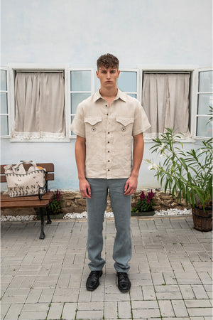 Voľnejšie nohavice z konopnej látky s jemnou herringbone väzbou. Príjemne priedušné, odolné a elegantné v minimalistickom strihu, ktorý spája prirodzený komfort s nadčasovým štýlom.