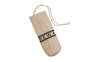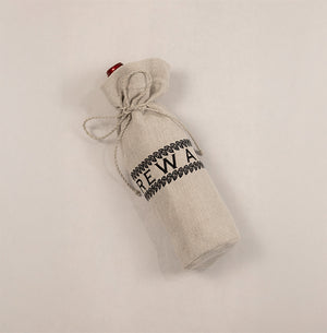 Konopný obal na fľašu s originálnou výšivkou, ideálny na darovanie aj opakované používanie. Prírodná tkanina je pevná, priedušná a dodáva fľaši elegantný, udržateľný vzhľad.